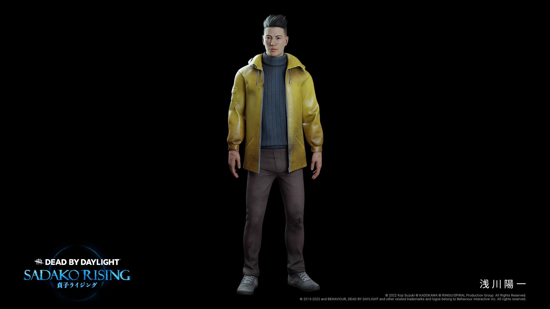 在原著系列作品中,小男孩浅川阳一是《午夜凶铃》中一度逃离贞子魔掌的角色,而《黎明杀机》续写了他长大之后成为海洋生物学家的故事。浅川阳一的新技能相较以往的逃生者角色得到了大幅的加强和丰富,比如在击晕杀手之后,他的血丝划痕、血泊与痛苦呻吟都会被暂时隐藏。