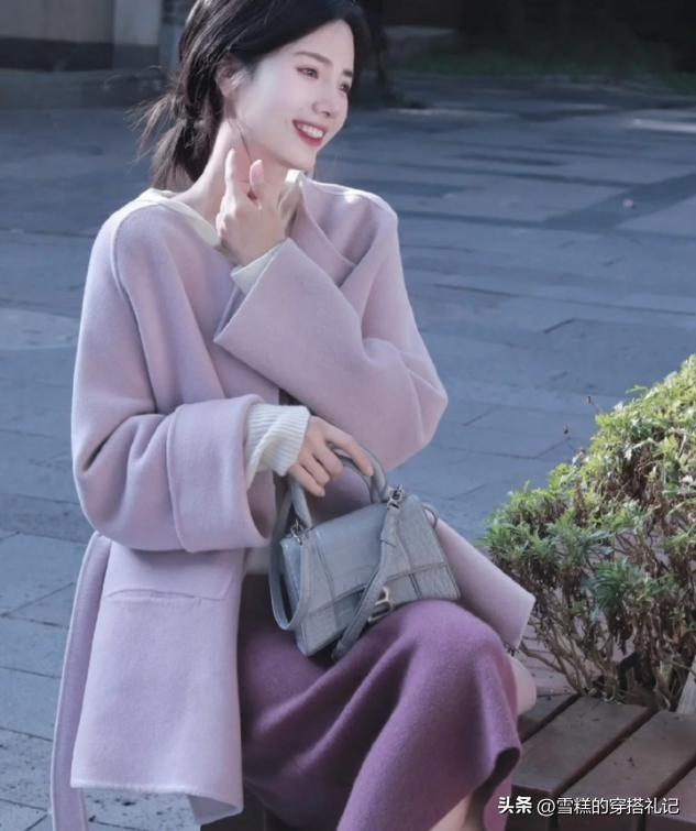 淡淡的紫色成为了今年大衣的优选色彩,因为这种看起来薄,却实际上很保暖的外套服装,大部分女生都会用来组合针织衫。