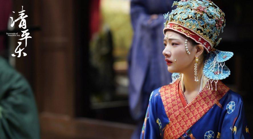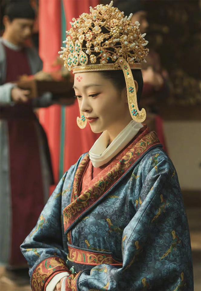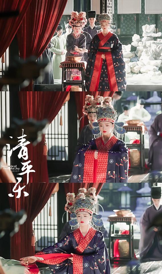古装剧女星「蓝色系嫁衣」6:任敏《清平乐》《清平乐》公主出嫁的婚服一样也是华丽的蓝色「翟衣」,除了嫁衣还原宋朝服制之外,任敏还画上了宋朝特有的「珍珠落泪妆」,华贵精致又优雅。其实宋朝的服装风格的华丽程度,一点都不比唐朝低呢!《清平乐》剧中有各种各样浮夸的头冠,被许多网友嫌弃太夸张,不过熟悉宋朝历史的网友表示,《清平乐》呈现的不过是史书上记载的冰山一角罢了。