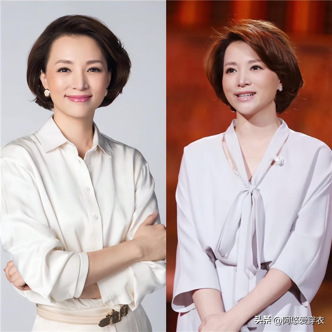 但其实中年女人一味地去烫卷发容易显老,暴露年龄感,尤其是所谓的小卷,很容易显得俗气和老套,像董卿这种优雅的短发造型,不仅风格优雅,而且容易打理,简约又干练。