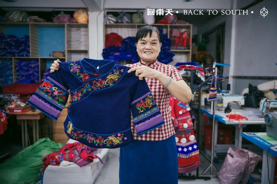 为了更好的传承壮服和彩绣技艺,当时已经六十多岁的陆兰珍,重新拾起了针线,和堂妹一起创办了纳福彩绣手工坊,开始走上了传承的道路。