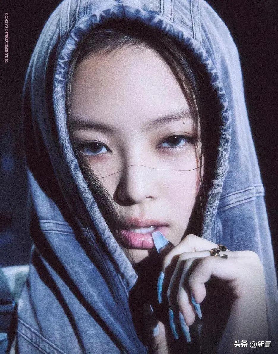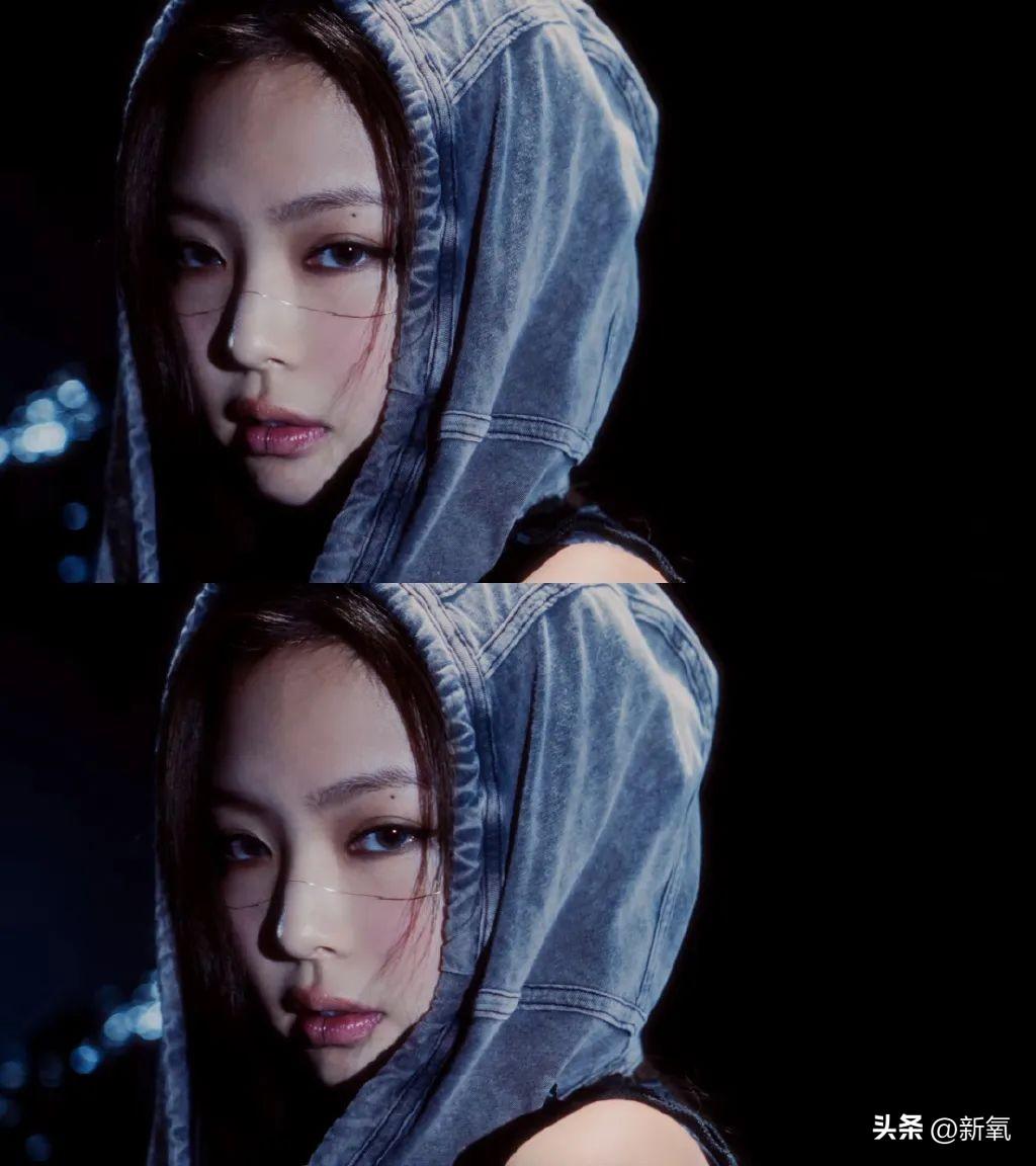 Jennie服装中的悬挂帽兜极具末日的颓靡之气,但巧妙又吸睛的脸部装饰却又增加了一丝精致的感觉。