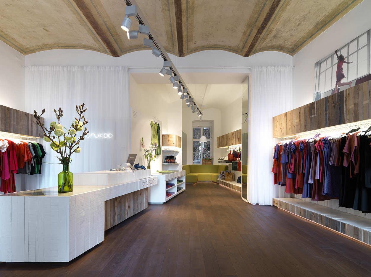 Alysi在米兰布雷拉区Ponte Vetero大街6号开设了一家精品店。该区域正迅速发展为米兰乃至国际的购物中心。由Studiopepe设计的门店位于一栋17世纪的建筑内,面积为130平方米。设计团队致力于将品牌的灵魂通过室内装修表达出来。精致而富有现代感的室内氛围搭配以半灰的自然色调,为商品的展示提供了适宜而不抢眼的背景。衣架和各种室内陈列共同凸显出现代女性的优雅审美。