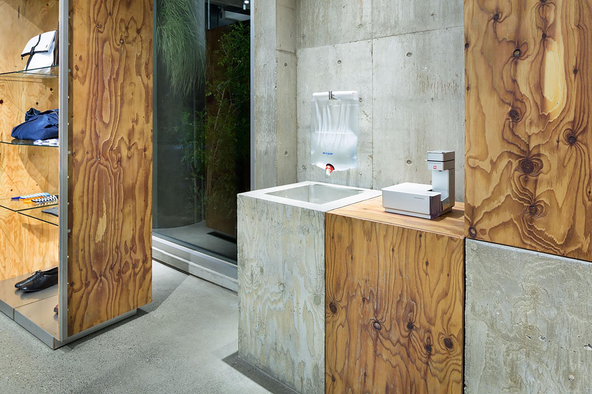 在这里,还引进了一个新的设计元素——由混凝土和模板组成的展示家具。