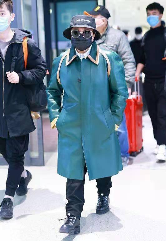 绿色的中长款皮大衣,也是需要一定的驾驭能力,但是韩红还是凭借个人稳重的气场穿出不一样的风味,棒球帽换成了渔夫帽,整体的造型感更加融合强烈,风格鲜明。