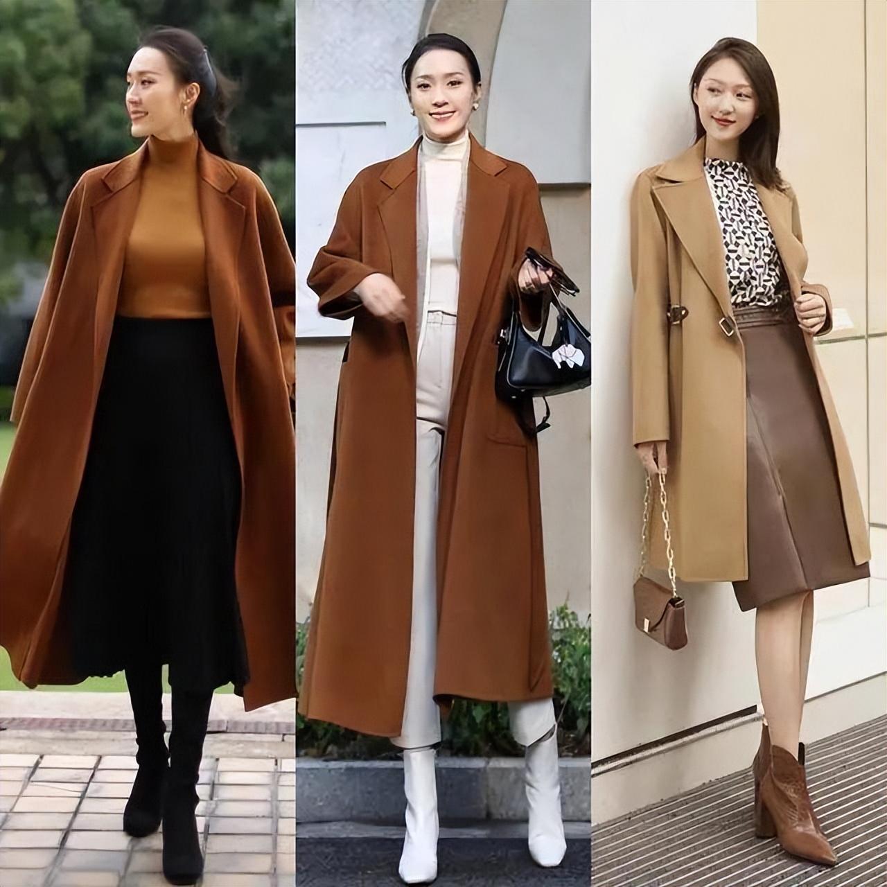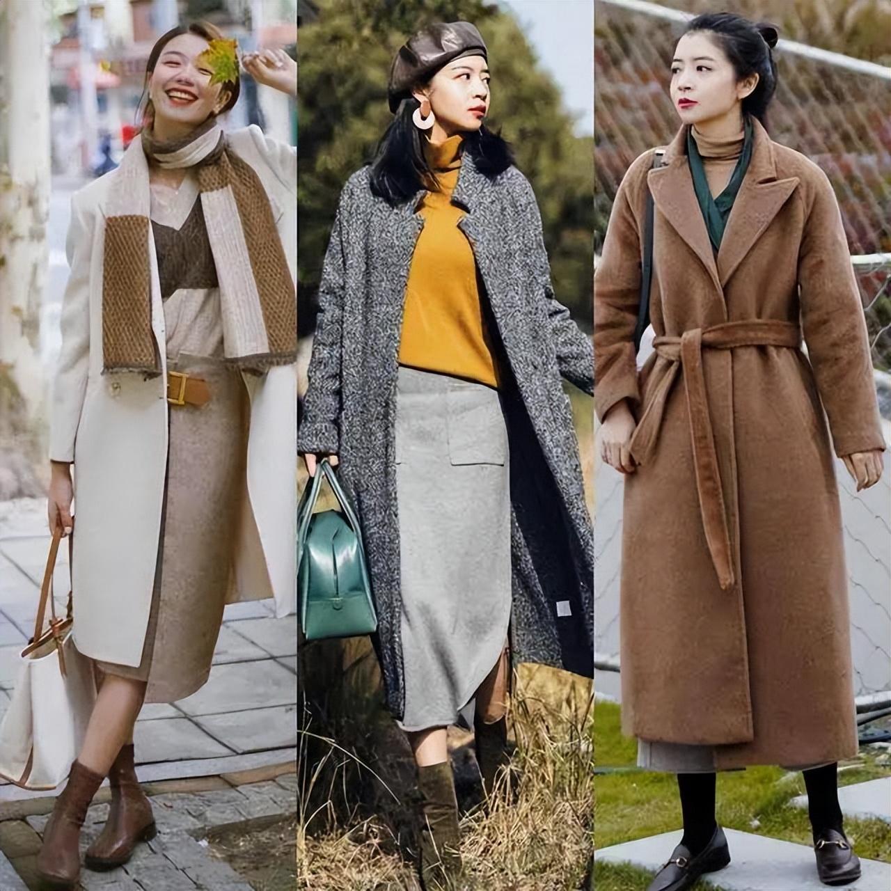 例如使用长款大衣拉长身段,然后通过抬高内搭腰线的方法提升穿搭显瘦果。这样做不仅能突出成熟魅力,而且还可以轻松穿出气场感。