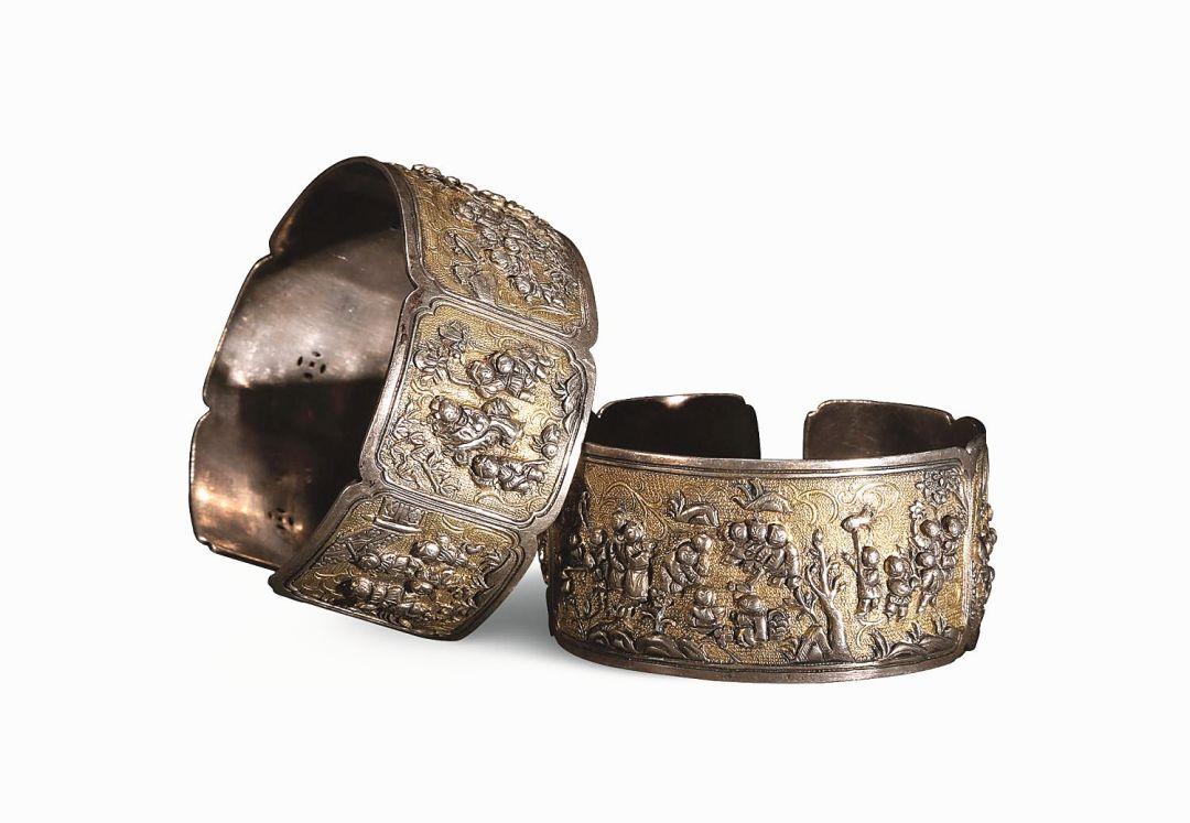 清 银制婴戏图臂钏一对(图片 | 雅昌艺术网)