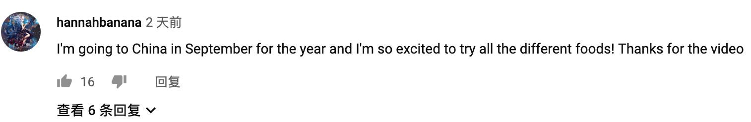 我马上9月份就要去中国了!我要尝遍视频中的美食!