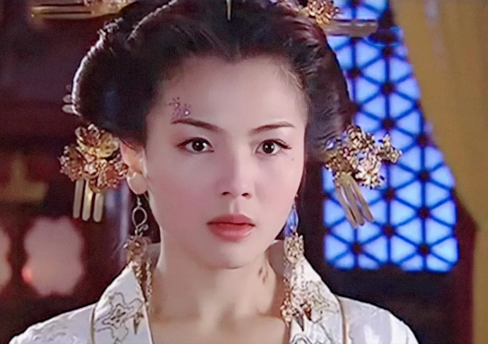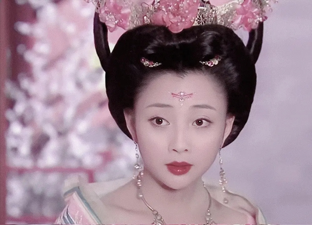 《问君能有几多愁》中刘涛饰演的花蕊夫人的碎妆造型,相对于额间花钿的平衡美,这样的造型反而更灵动妩媚一点。