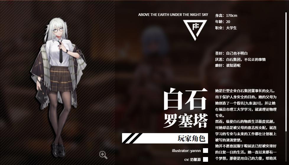 说“知名”,是因为游戏从宣发阶段开始就受到了远超同类游戏的关注。这种关注一方面来源于XP缝合的人设——女主白石罗塞塔白毛黑丝衬衫领带加上女同的设定就引得大伙争相转发;