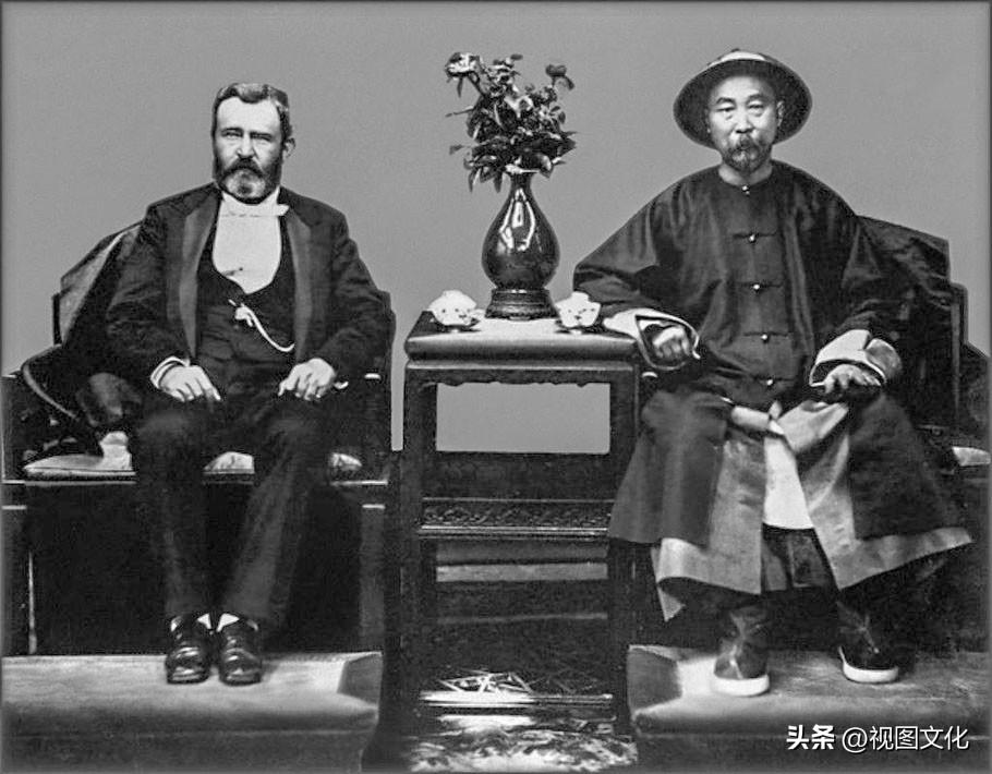 清光绪五年(1879),天津,尤利塞斯格兰特与李鸿章合影。