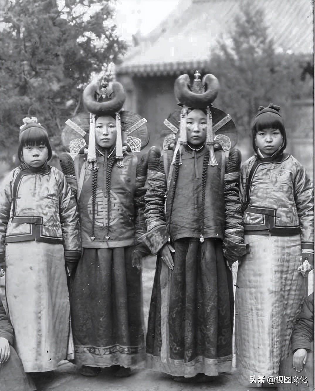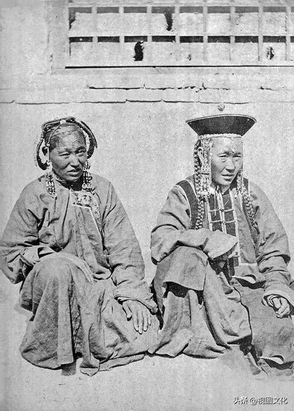 同治十三年(1874),内蒙古,两个身着传统服饰的察哈尔妇女。