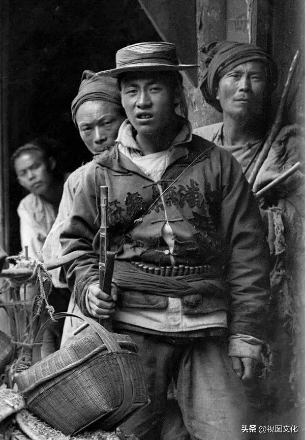 清宣统二年(1910),8月31日,四川茂州,一名持枪的清兵,胸前绣字:松潘抚夷府。