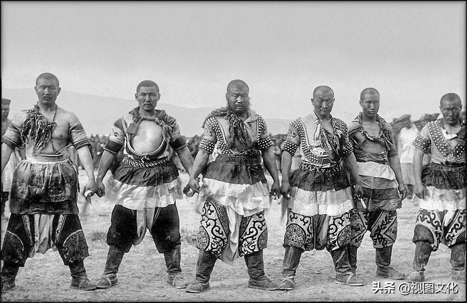 宣统元年(1909),身着传统服饰的壮士,像是摔跤高手。