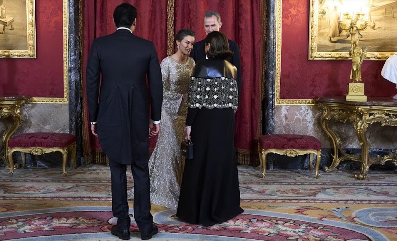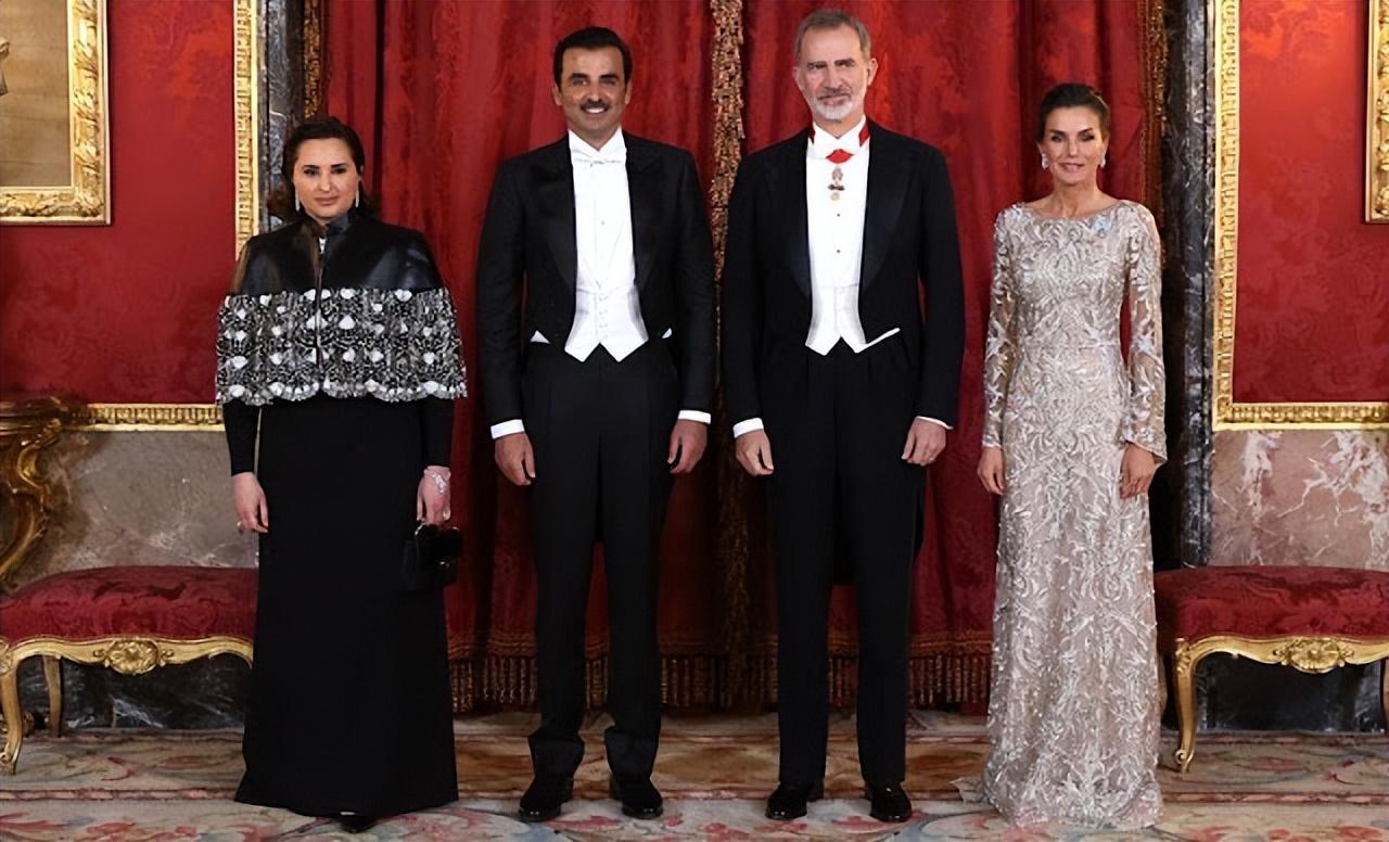 西班牙王后穿镂空银裙亮相国宴!卡塔尔第一夫人好富态,莱后稳赢