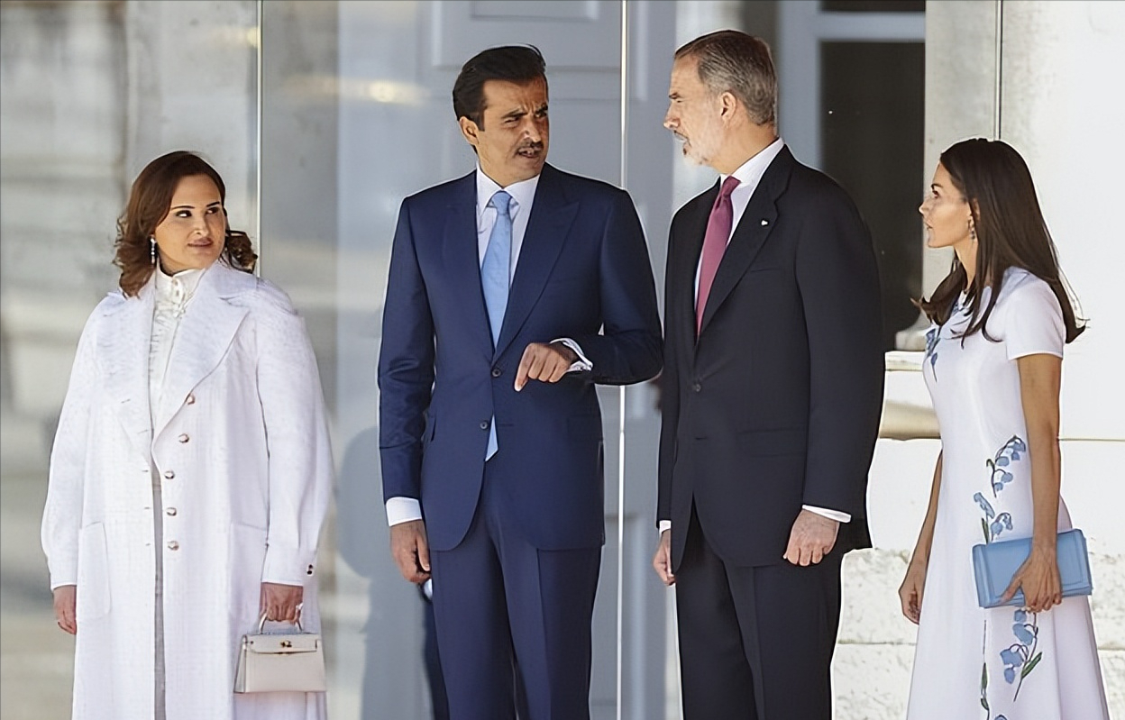 尤其是和不到100斤的莱蒂齐亚王后同框,卡塔尔第一夫人的身材看起来是莱后的三倍粗。卡塔尔第一夫人这次访问西班牙,特意穿上了比较有现代感风格的衣服,而不是包着头巾的造型。