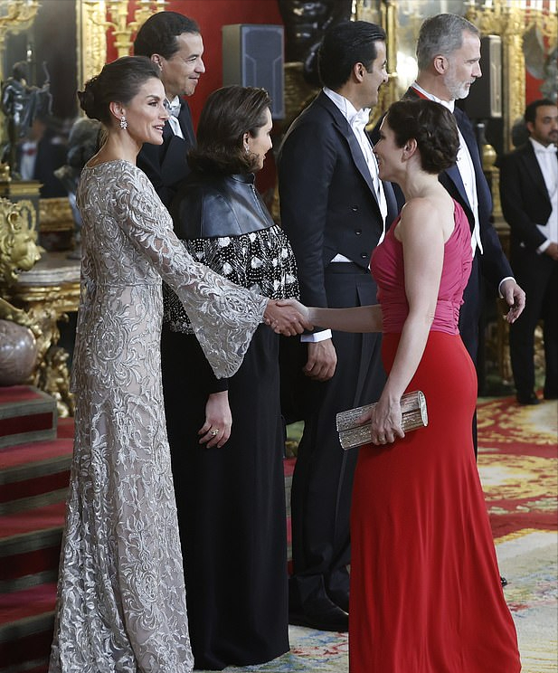 卡塔尔总统夫妇这几天正在西班牙访问,西班牙王后莱蒂齐亚和国王举行了国宴欢迎总统夫妇。莱后的衣品一向很高 ,而一直都是富态十足的卡塔尔第一夫人,有着接近200斤的体重,这样的“重量级”体重,在不足100斤的莱后面前,气场倒是不输,不过莱后还是更加惊艳。