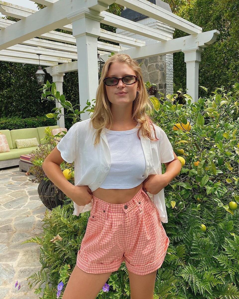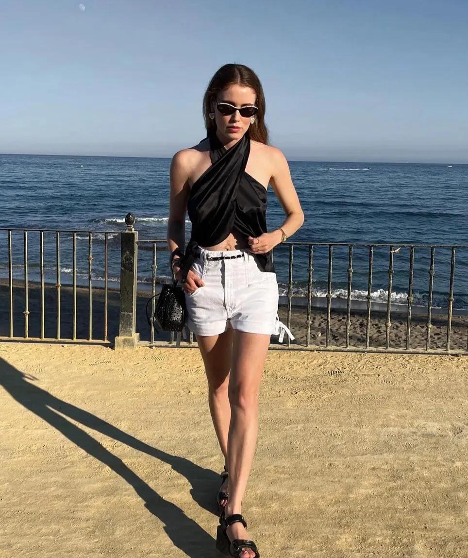 当然,除了基础款的白背心,本季流行的露脐白背心则是更加凉快性感,有点bm风的感觉。无论是搭配短裙还是长裤,都市丽人的时髦利落都被展现得淋漓尽致,酷飒又高级!