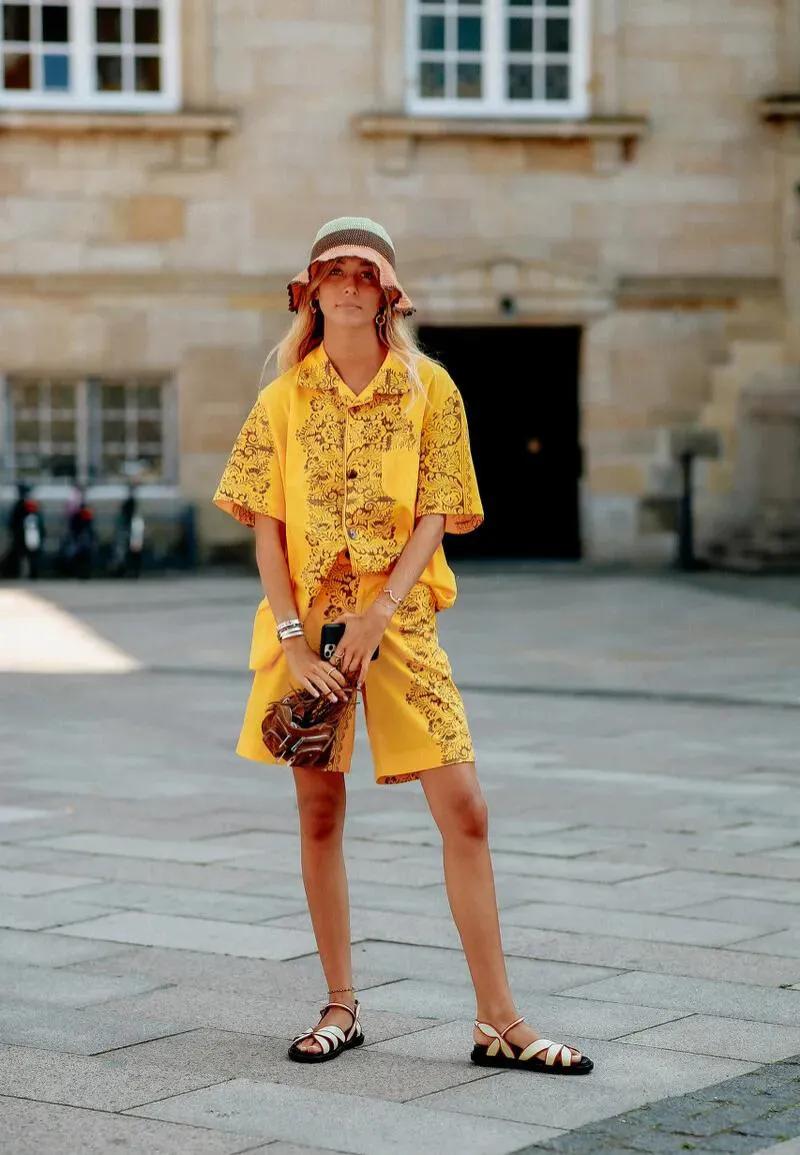 然而,今年夏天的时髦套装可不只有衬衫+短裤这套组合,针织套装也同样火爆。本季,针织已经完全跨越了季节的界限,不再只为气温低迷的天气服务。炎热的三伏天,有弹力的针织套装同样可以大显身手,穿出时髦与清凉。