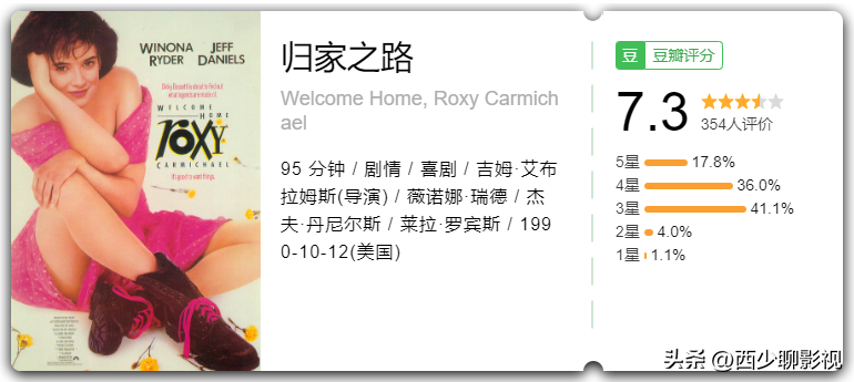 这两天被薇诺娜·瑞德吸粉了,明天可能还会再发一部她的片子。18岁的薇诺娜实在太美了,或许也是她颜值的年龄吧。故事有点单薄,但人物都很鲜活,造型和道具都是90年代明亮的色调。有的小细节很有意思,满满的生活感,适合晴天傍晚的时候看。