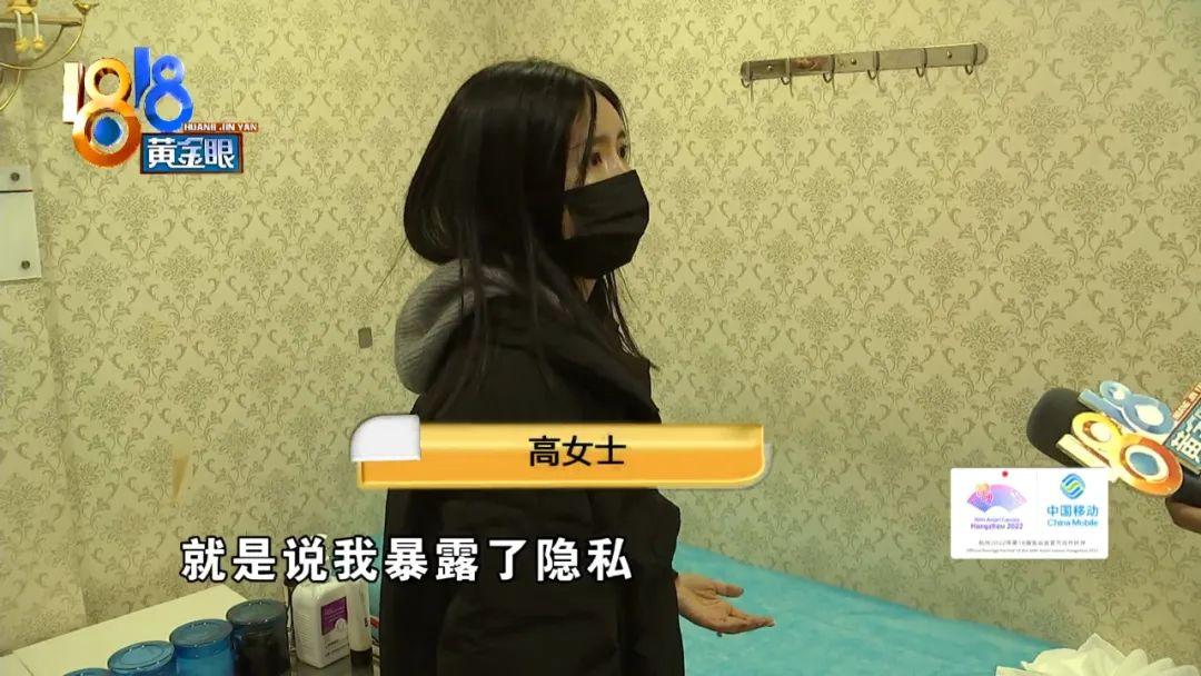 高女士反映,她到杭州天城路上的悟空祛痘门店做项目,在店里把衣服脱掉后,才发现房间里的摄像头在运行。
