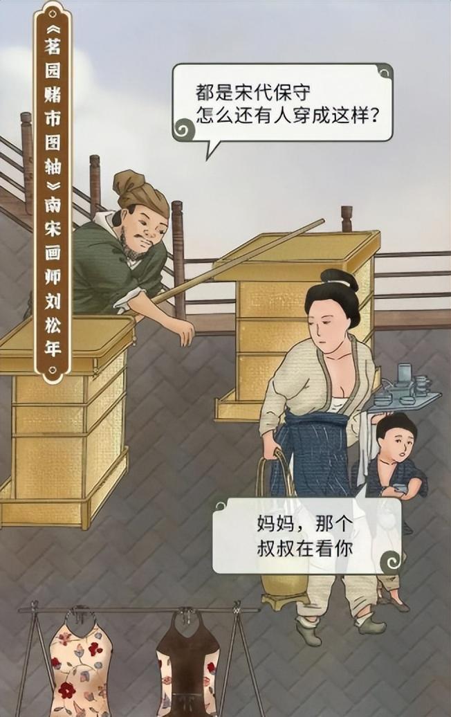 宋朝的时候人们又回归保守,从唐朝的抹胸变为了系带款。