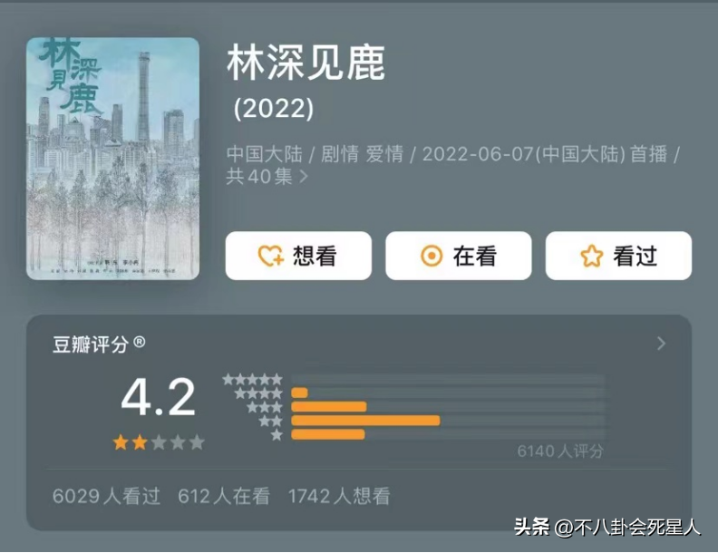 这几年都市婚恋的影视题材确实很火爆,与之相对应的观众的要求越来越高, 《林深见鹿》从离婚到婚后的纠葛再到重新在一起,仿佛不是一个成年人经过思考做出的决定,4.2分可能是看在靳东与李小冉的演技上给的。