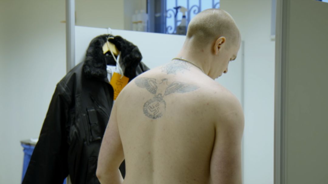 这个片子拍到几个囚徒,一个比较重要的角色是一位罗姆人,也就是我们说的吉普赛人,这是稍微有一些受到歧视的民族。这个监狱艺术教育项目是由两个女艺术家发起的,有一个年长一些,一个年轻一些。那个年长的女人在片中提到跟性别相关的一点是,他们邀请了很多男性艺术家去参加这个项目,但是他们都拒绝了。那些囚徒浑身都是纹身,有些是终身监禁,有些是几次犯案,然后他们要面对这两个金发碧眼的女教育者,以及摄影机后面的这位中国女导演。所以我的一个问题可能是,被一个中国女导演或者高大的瑞典男性拍摄对他们来说会不会有什么不同?