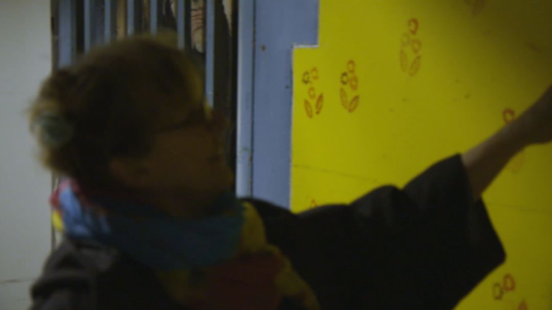 周燕:其实我觉得我们的剪辑,虽然结构是以圆形为主,但是所有的电影其实都是以心理空间和心理距离来建构的。让是一个重要的角色。纪录片有一个重要的线索就是,70年的老犯人让,是一个幽灵,他被困在了监狱历史中,回到贝莉奈西所说的空间构造上面,不知道大家有没有注意到有一大段,其实是一段七十年代监狱废墟的镜头,是让曾经存在的时代。这里面就是心理距离和心理空间,跟整个结构是有关的,因为像女艺术家,她们其实有时候也会谈论这个事情,在监狱工作有的时候她会有一种,“haunted”的这种感觉。包括老艺术家,她从瑞典南部搬到了离库马拉(监狱所在地)不远的小城,但是她一点都不忌讳说这个事情,她说监狱工作的这个经验对我来说真的是终身影响。