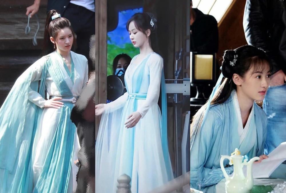 「古装剧撞衫」对比2:《且试天下》赵露思 vs. 《沉香如屑》杨紫 vs. 《琉璃》袁冰妍《且试天下》、《沉香如屑》、《琉璃》三部剧是同一个造型团队,因此造型相似度相当高。之前赵露思、杨紫和袁冰妍有一组蓝衣古装造型,就被发现撞衫了。三套衣服看上去几乎一模一样,如果不仔细看,几乎看不出差别。