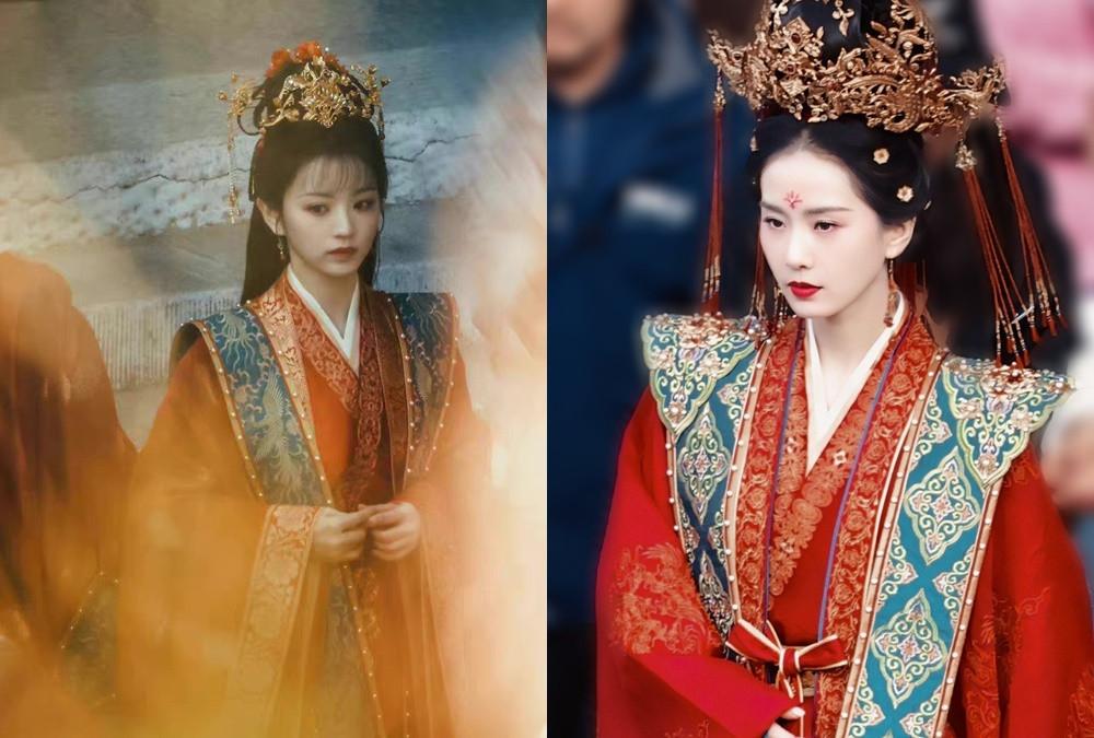 「古装剧撞衫」对比3:《如意芳霏》鞠婧祎 vs. 《东宫》彭小苒鞠婧祎在《如意芳霏》这套红色的异域造型就曾引起热议,因为和彭小苒在《东宫》的造型相似度百分百,同样都是全身红、面纱、西域珠饰。
