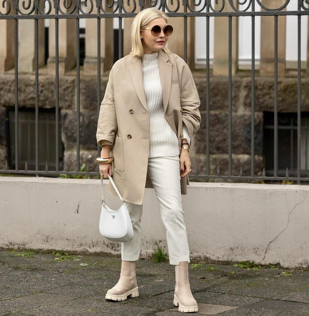Petra Dines 设法将外套与牛仔裤和运动鞋优雅地结合在一起,从而营造出日常造型。或者搭配铅笔裙和白色衬衫,实际上是任何外套的不朽组合。