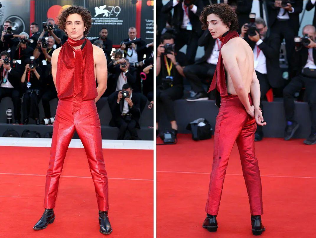 当天他身穿Haider Ackermann特别定制的红色套装露面,正面看还挺摇滚的,结果背面是大露背设计,确实有点“惊艳”得措手不及~