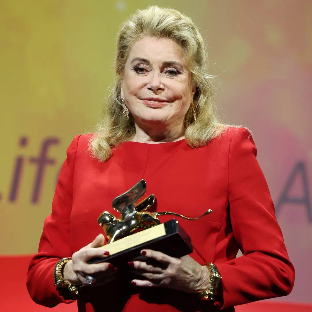 今年不少明星都选择一身大红出场。法国女演员Catherine Deneuve,她这一身简约红裙来自YSL ,搭配Roger Vivier银色手包和高跟鞋。别看已经78 岁了,气色依然很不错。