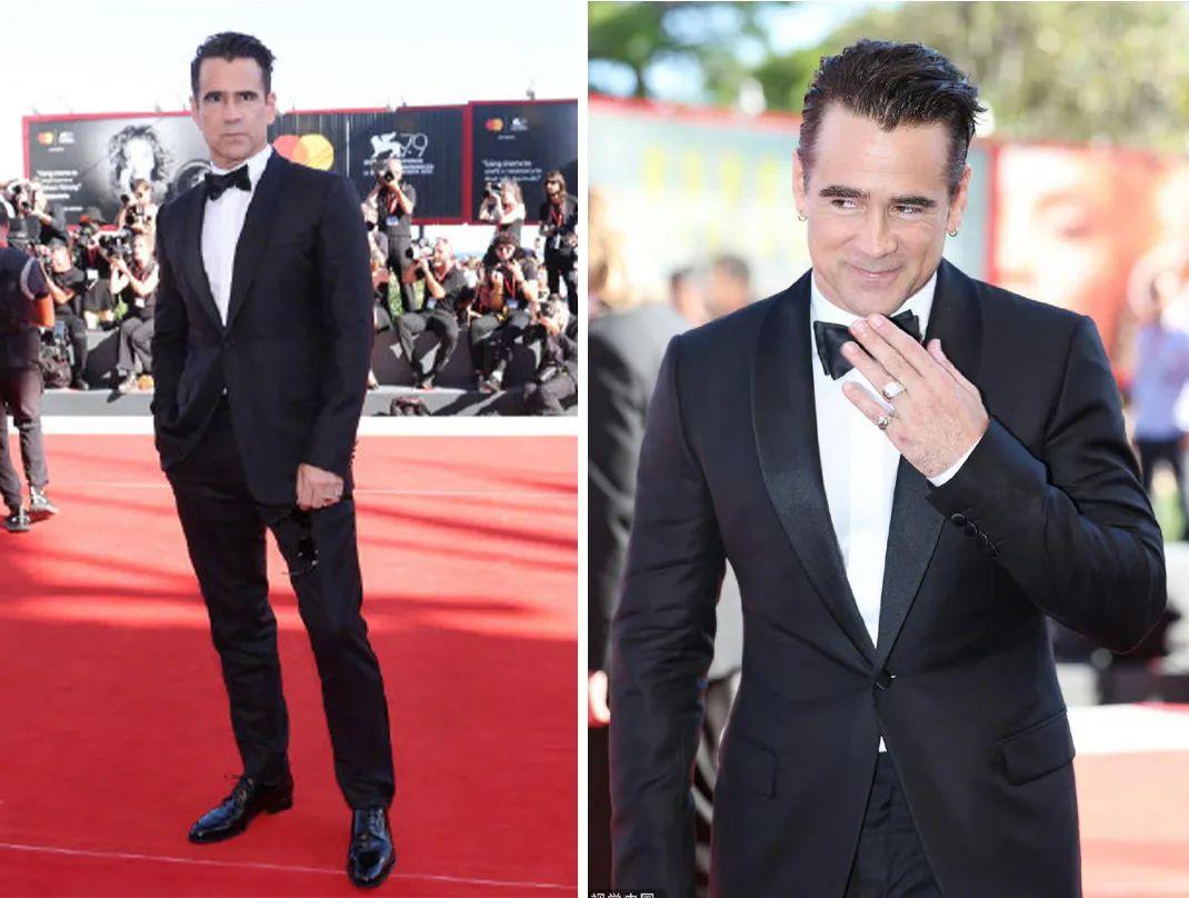 科林·法瑞尔则是选择了经典的黑色燕尾服套装,配上耳环和两枚戒指,感觉还挺闷骚的。