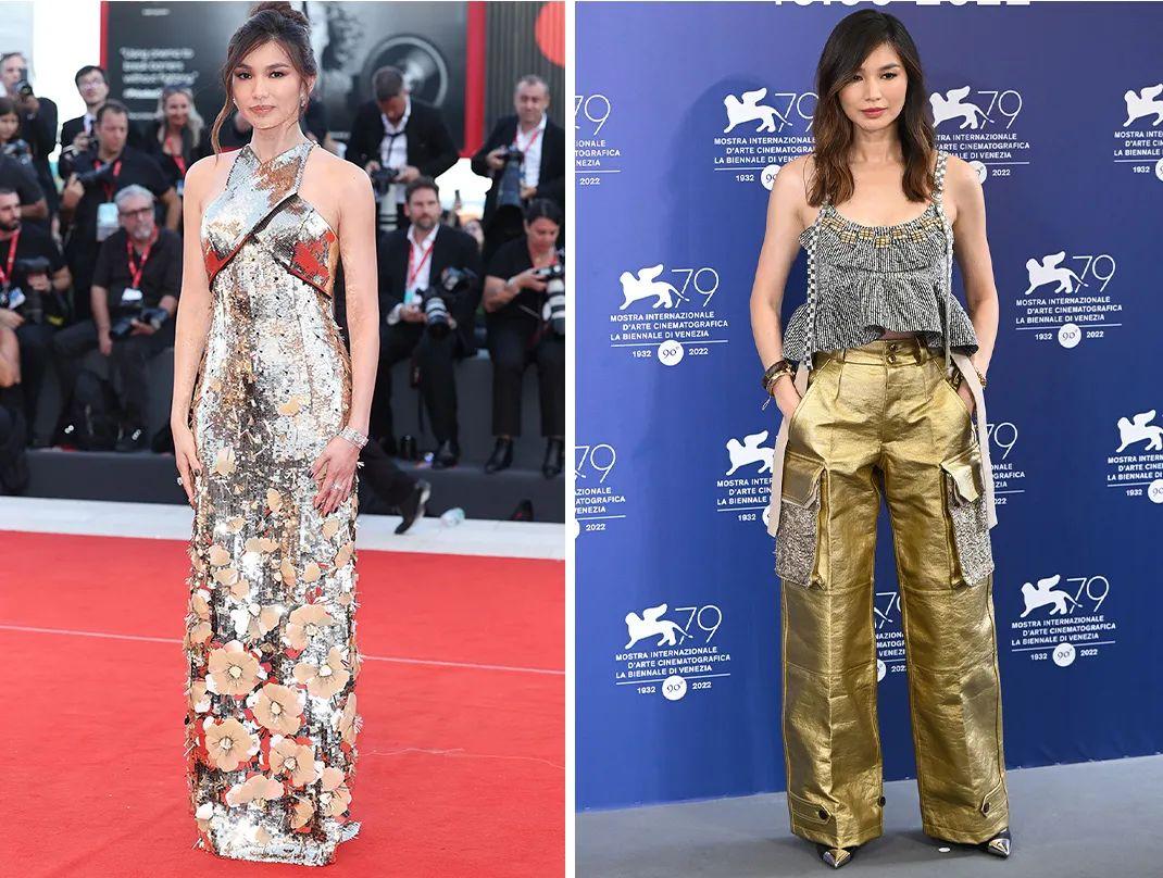 华裔女星Gemma Chan这次红毯的两个造型都选择了Louis Vuitton女装,一条银色亮片长裙,和一套金色裤装,很有未来感。
