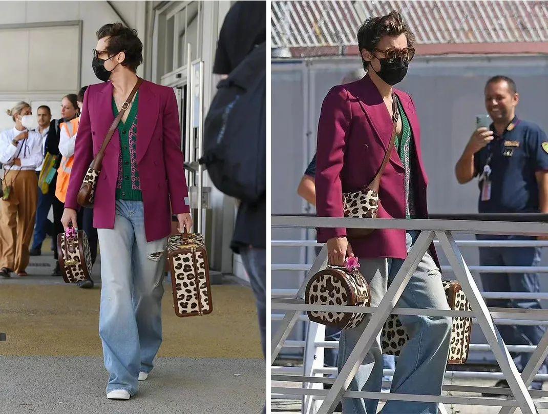 哈卷这次依然total Gucci:一身紫色西装搭配绿色针织衫,手里的三只豹纹行囊也是浮夸吸睛。看得让人很期待他和甜茶来一个红毯大比拼~