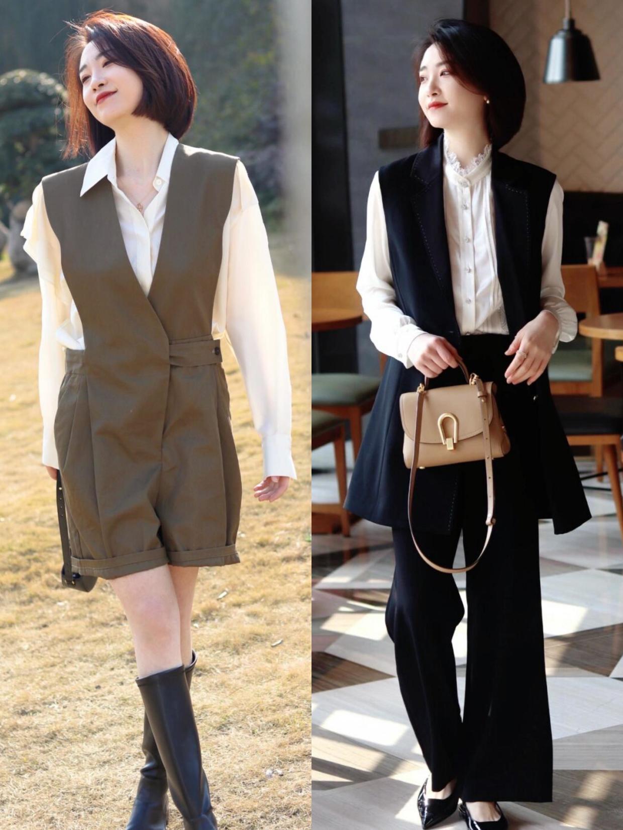 现在处于早春季节,天气还没能完全回温,有时候还是会变冷,所以怕冷的姐妹可以试试衬衫的叠穿法。在衬衫的基础上搭配无袖马甲、外套就是不错的选择,它会露出里面的衬衫袖口,从而打造出比较丰富的层次,还能起到一定的保暖作用,简约又大气。