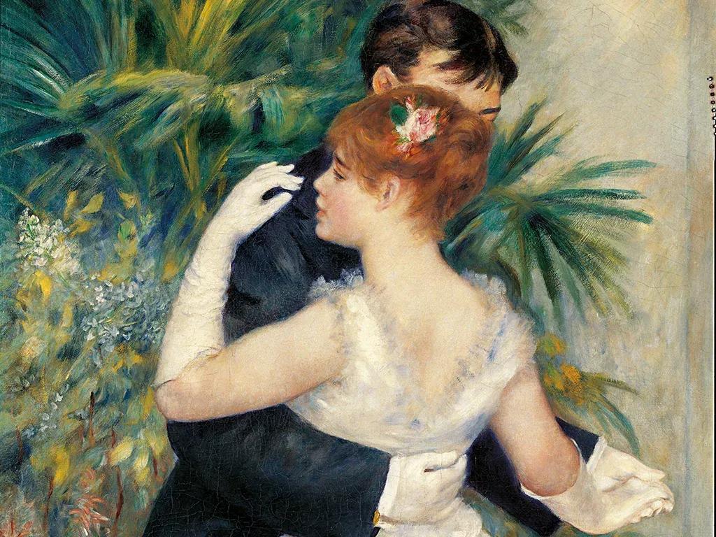 《城市之舞》,作者皮埃尔·奥古斯特·雷诺阿,创作于1883年。维多利亚时代的时尚男女在公共场合都要戴手套。