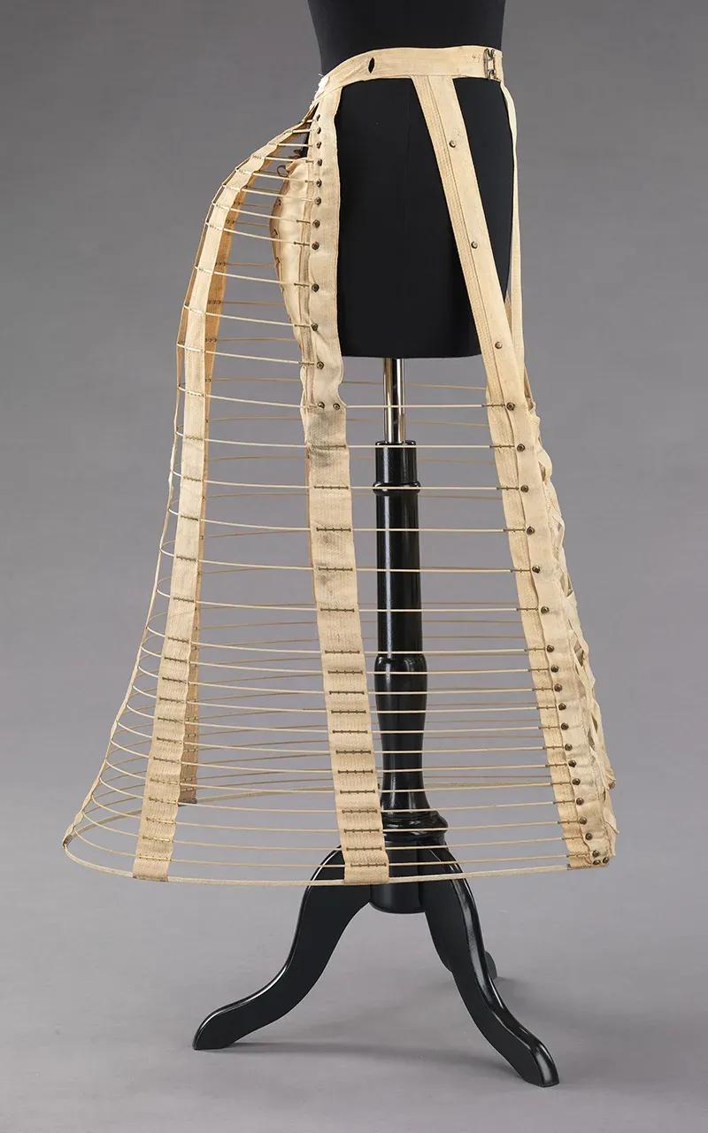 19世纪60年代,女性开始青睐裙撑,它能从正面和两侧塑造出苗条的轮廓。这稍微实用一点,但仍然要求女性牺牲运动和舒适,以达到时尚的形状。衬垫沉重地悬挂在腰部,引起背部疼痛,女性需要扭动身体才能坐下。