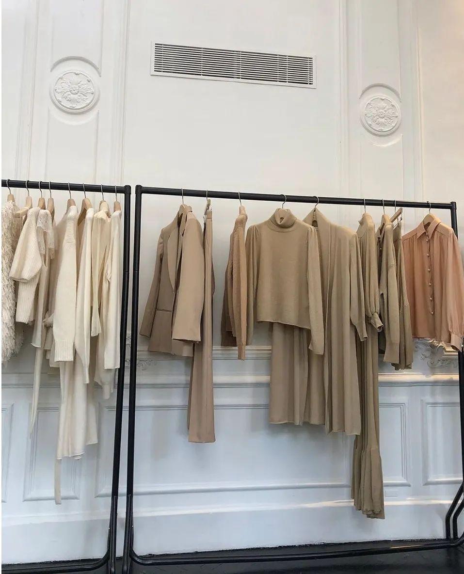 如店铺陈列色彩都是柔和浊色系,从产品的宣传角度上,色彩就是一次无言的介绍,既表达出安静柔和的美感,又传播了品牌的调性。