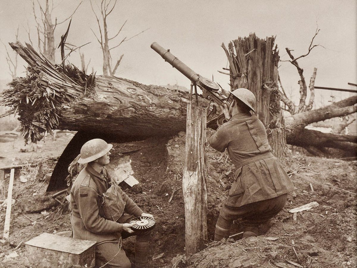 一战期间,用刘易斯轻机枪狙击敌机的英军士兵。