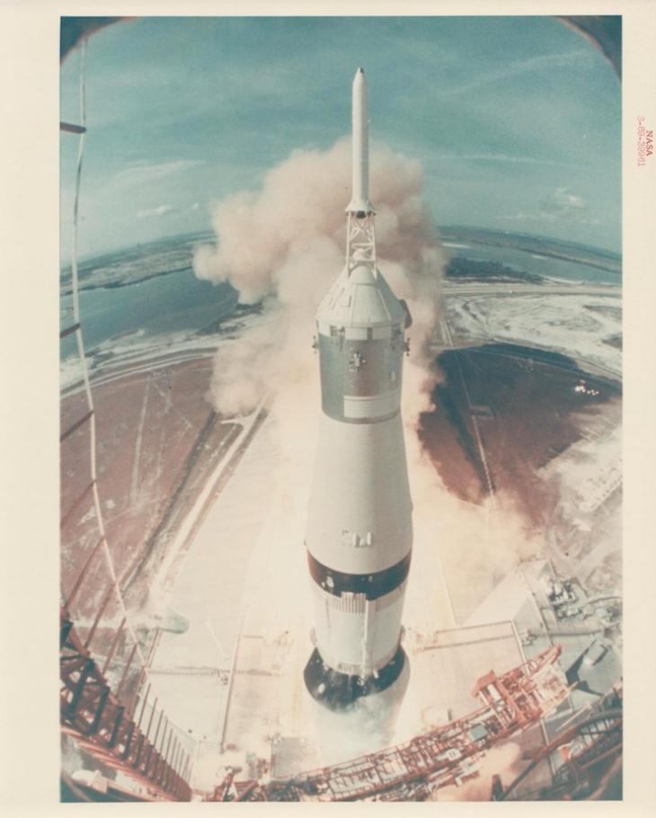 1969年7月16日,从顶部看到的阿波罗11号升空,四天后的7月20日,阿波罗11号登陆月球,使阿姆斯特朗成为第一个踏上月球表面的人。