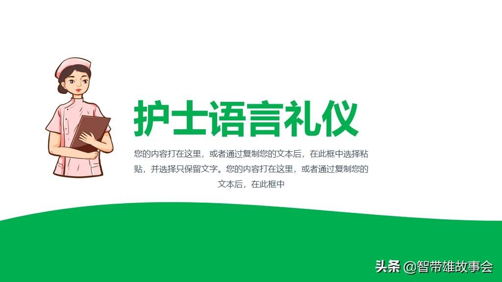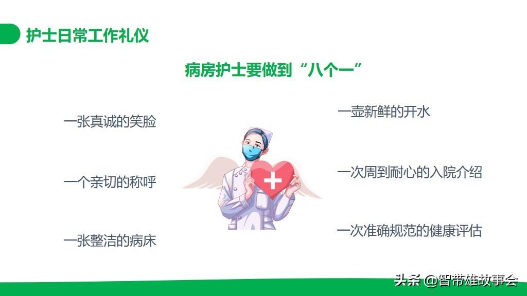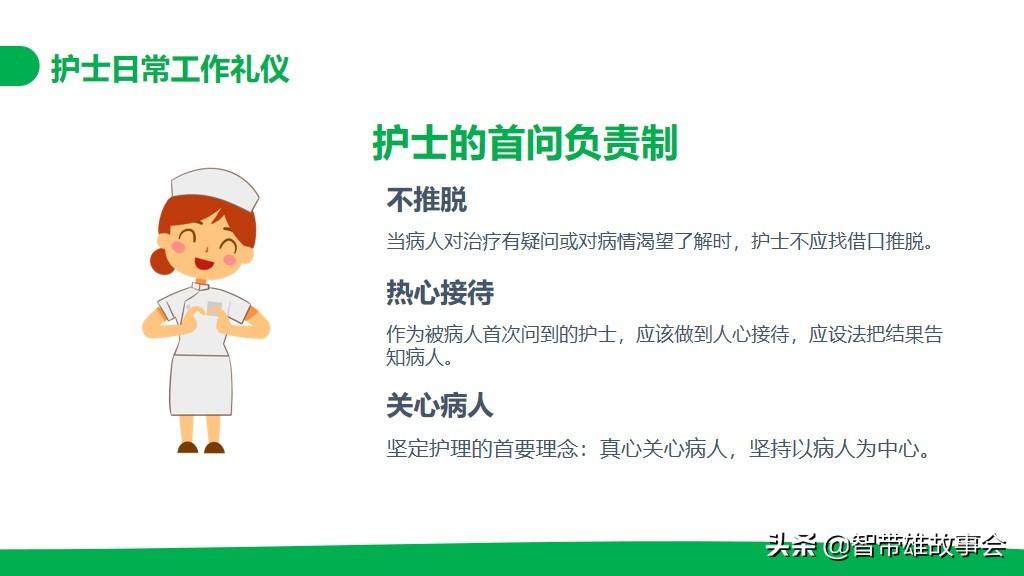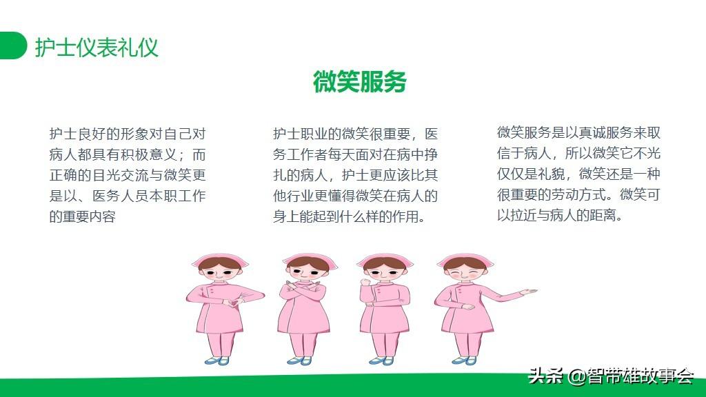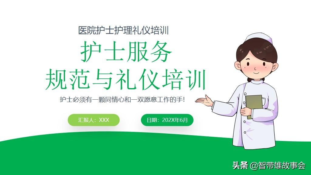 关键词:绿色清新护士服务规范PPT下载,护士服务规范与礼仪培训PPT免费下载,.PPTX格式; 智带雄ppt