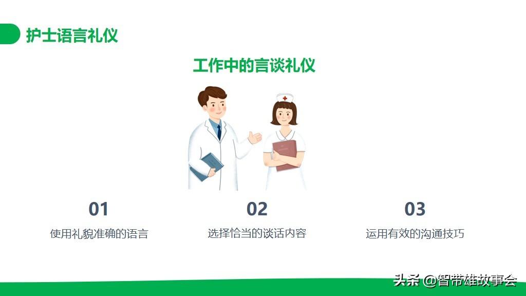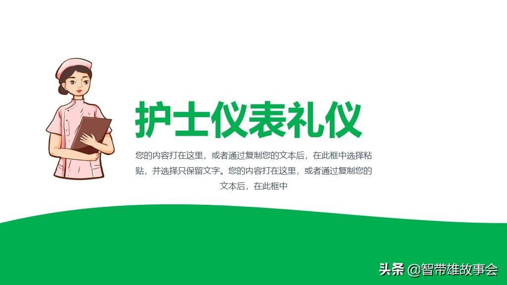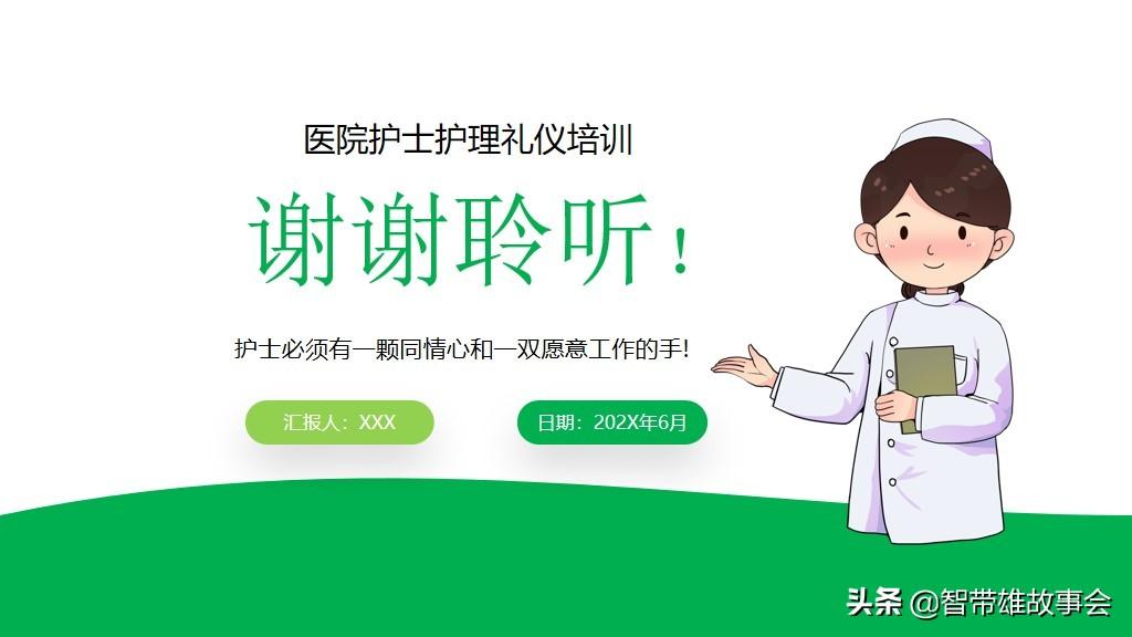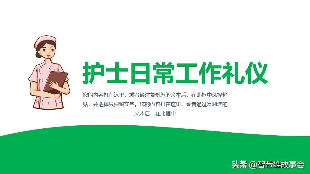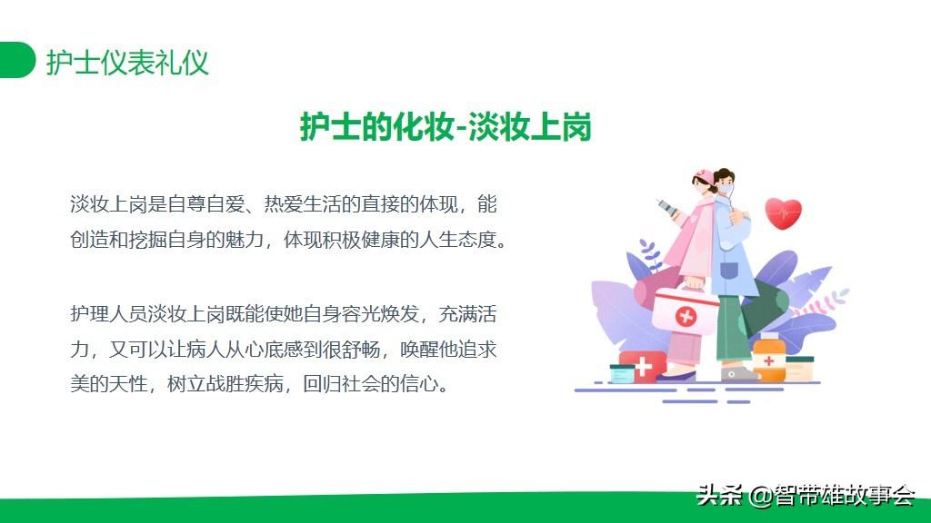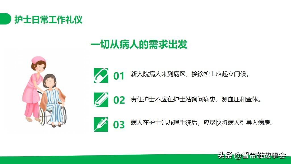 关键词:绿色清新护士服务规范PPT下载,护士服务规范与礼仪培训PPT免费下载,.PPTX格式; 智带雄ppt