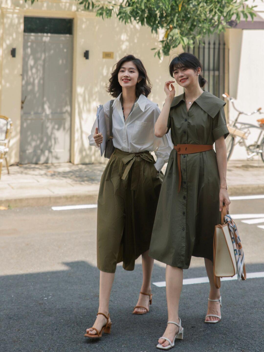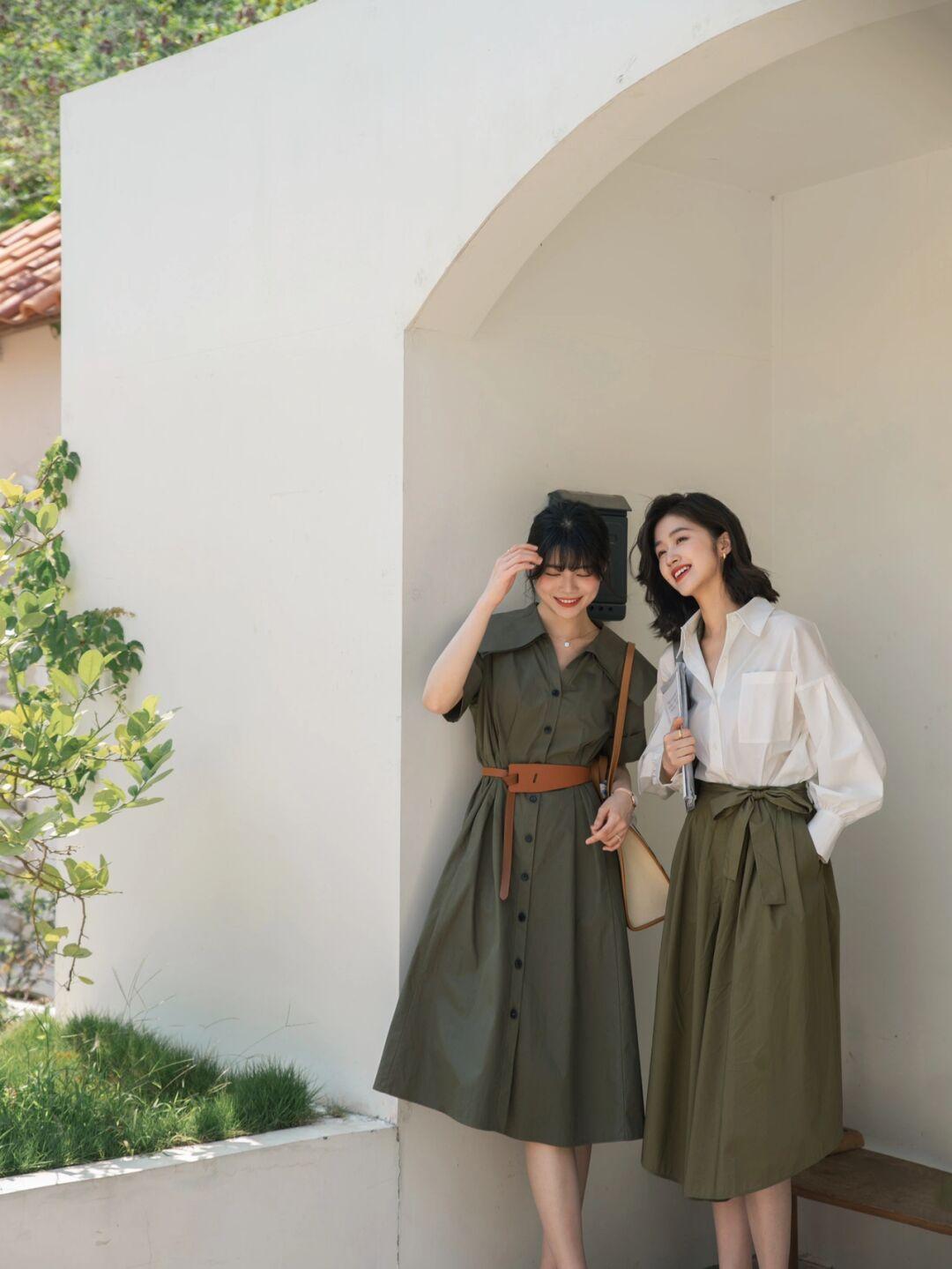白色衬衫是为百搭的款式,和墨绿色的A字半身裙结合,还真别说,那么好看的;而且另一套的穿搭也很好看,直接一件墨绿色衬衫连衣裙,就能搞定整个造型,都是采用宽松的设计,对身材包容性都很好,值得种草。