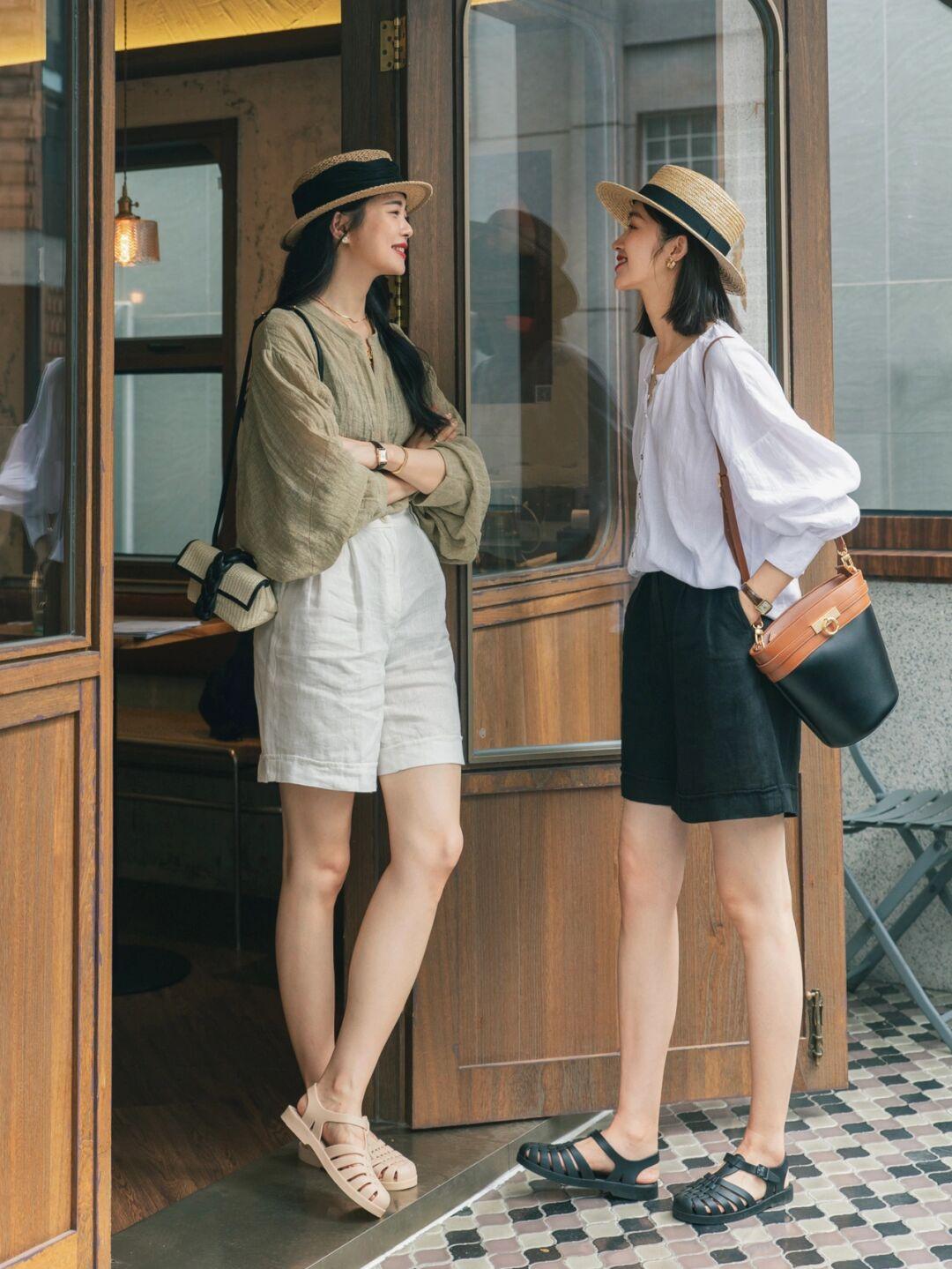 ①:你也可以选择黑色的衬衫搭配休闲短裤,不喜欢穿搭牛仔短裤的女生,或者是因为胯骨宽穿短裙不好看,就可以选择这样的穿搭啦。