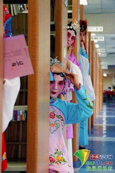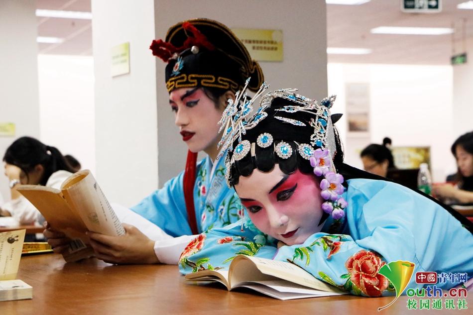 戏子也爱“看书”。中国青年网通讯员 杨速 摄