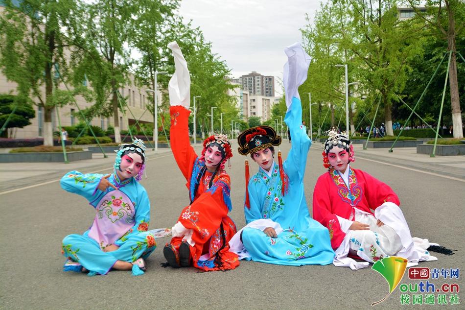 中国青年网成都6月6日电(通讯员 杨速 肖兰英)一年一度毕业季,一回一轮难舍离。大学是青春放荡不羁的洒脱,青春是恰同学少年意气风发的自我。一个共同的兴趣,集结了一群志同道合的朋友。作为四川农业大学校艺术团戏曲分团的毕业生,在离别母校之际,他们穿起戏曲与母校留念,用独特的方式诠释自己的青春,给自己的大学生活画上一个圆满的句号。