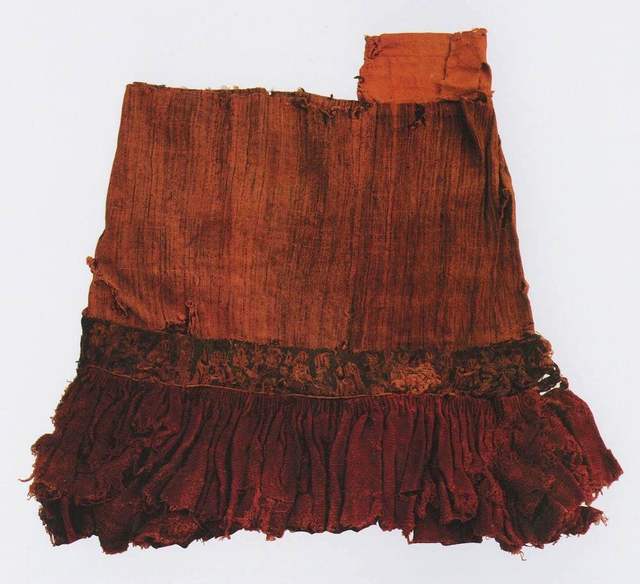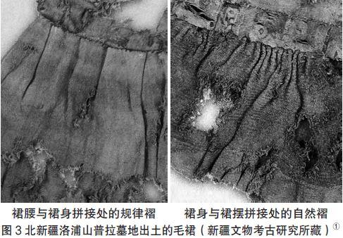 规律褶体现了秩序和动感,褶也具有一定的方向性;自然褶则比较随意而多变,体现了丰富和活泼。这两种施褶形式可从新疆山普拉墓地出土的女裙中体现。